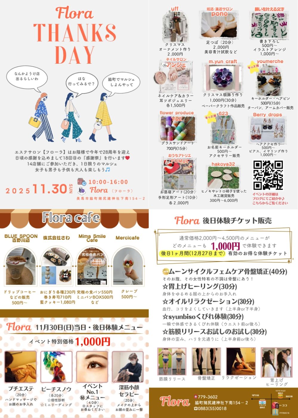 Flora(フローラ)は徳島県美馬市脇町にある女性限定のトータルビューティーサロンです。